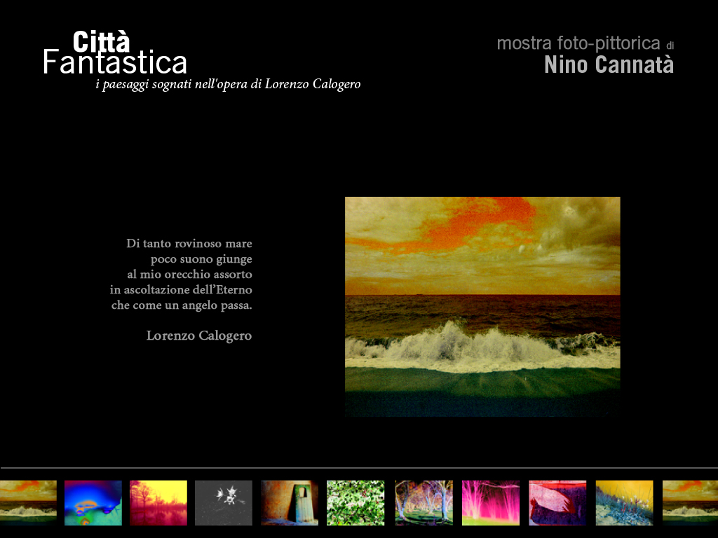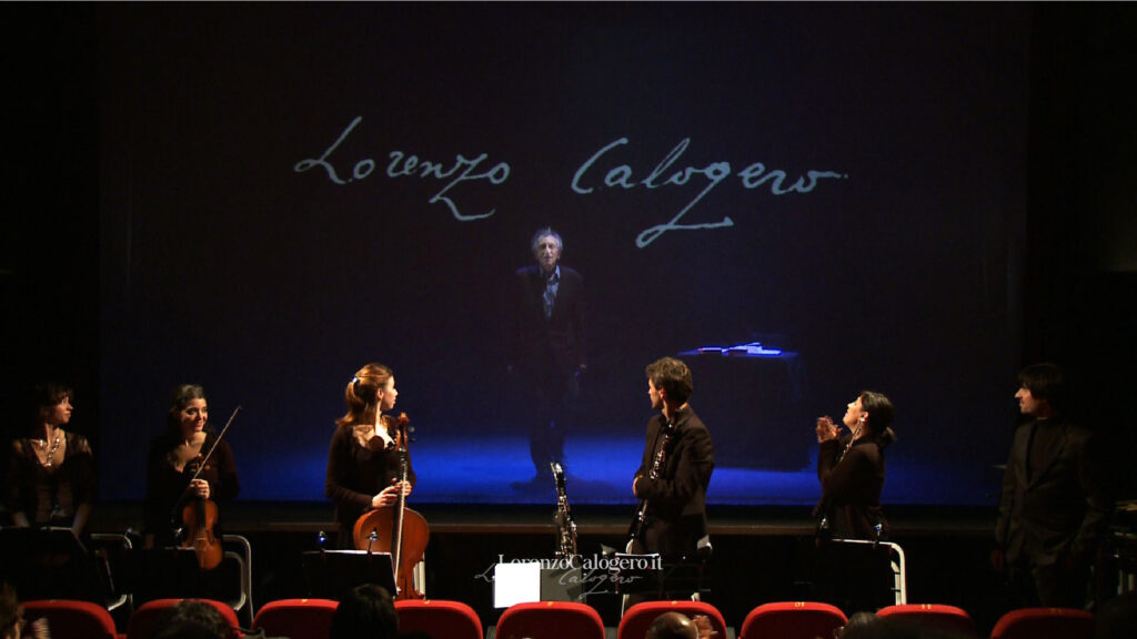Le sei poesie eponime scandiscono l’evoluzione dell’originale sistema poetico calogeriano, fino alla piena maturità dei quaderni di Villa Nuccia. Traccia di quel canzoniere amoroso si manifesta nella voce dell’attore, solitario in scena, mentre la figura femminile è voce che muta in canto lirico sulla partitura originale suggerita da un abbozzo di note, scoperto in uno dei quaderni manoscritti del poeta. Una fitta trama di voci off ricordano la vicenda umana del poeta, con brani tratti dall’epistolario, dalla biografia, dalle testimonianze di Giuseppe Tedeschi, dalle storiche “Opere poetiche” di Roberto Lerici. Nell’opera video teatrale, il linguaggio multimediale è contrappunto di risonanze, riflessioni, mirabili suggestioni all’arabesco poetico di Lorenzo Calogero. La messa in scena tenta di svelare, attraverso le stesse immagini che il fiume di versi custodisce, quel sogno che il poeta medita nell’intero arco della sua vita: un «soliloquio altissimo» che si articola come un poema, proprio perché la frammentarietà dei suoi versi, nell’insieme, risulta univoca come un lungo canto.