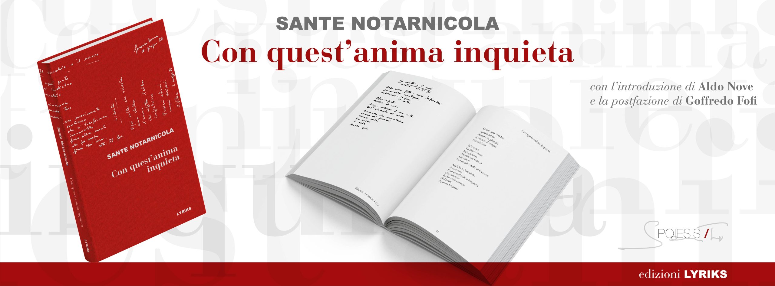 Con quest’anima inquieta è l’unica rimasta finora fuori catalogo. Questa riedizione postuma, con l’introduzione di Aldo Nove e la postfazione di Goffredo Fofi, colma il silenzio editoriale restituendo al pubblico la possibilità di rileggere una raccolta di versi che non smette, ora come allora, di farci riflettere e appassionare.